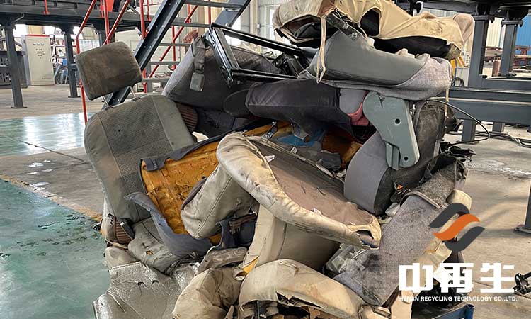 在大型報廢拆解汽車中心,每天會產生大量的車中的座椅,由于拆解麻煩且費時費力,再加上產生大量 的皮套與海綿無法處理,因此拆解中心都不愿拆解座椅,只能把大量廢舊座椅用于出售。