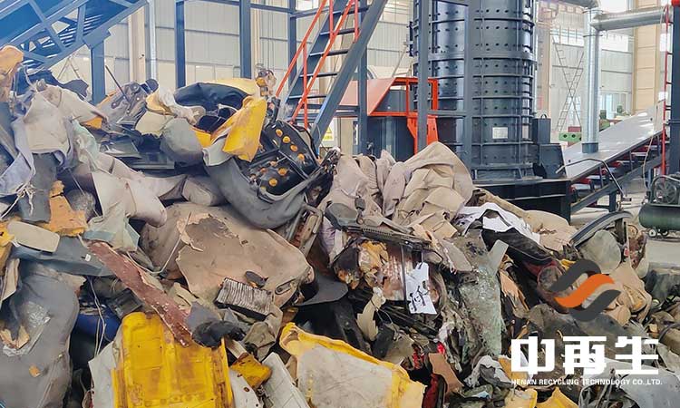 汽車座椅破碎分選線主要是針對汽車座椅進行破碎加工的,經過加工處理后的物料規格統一、密度小、便于儲存運輸。全套設備的作業流程主要是由前端的撕碎機對汽車座椅進行粗碎處理。然后再經過破碎機對物料進行撕扯、捶打、擠壓以達到細碎的效果。最后通過分選設備分離出金屬和非金屬物料。在破碎機后端配備有風力設備和除塵設備,對作業中出現的粉塵進行收集,防治粉塵污染。